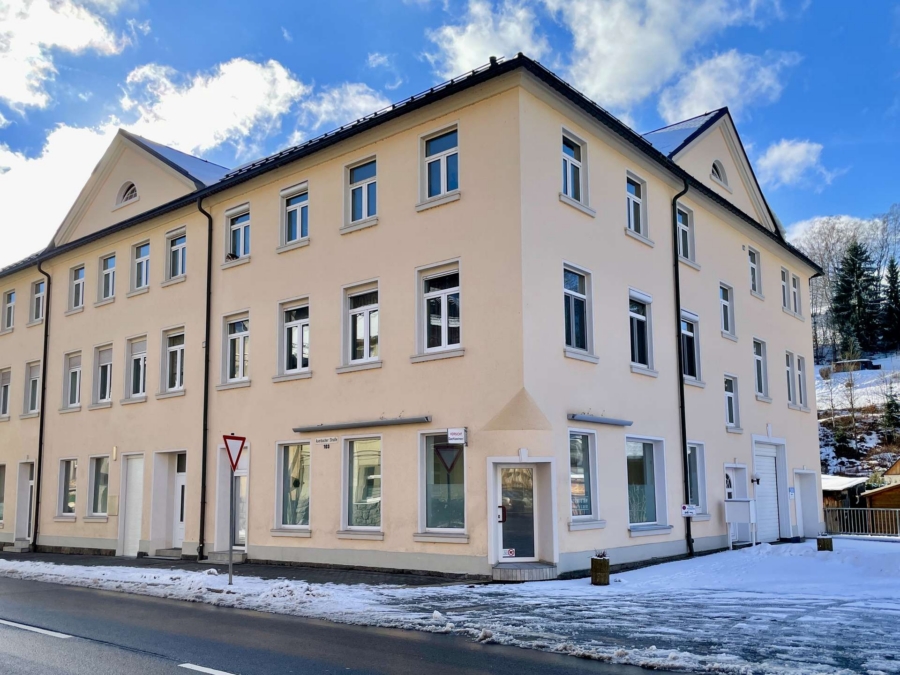 Aufgrund seiner direkten Lage an der Hauptstraße in Klingenthal eignet es sich perfekt, um Kunden anzuziehen und mit Werbung an den großen Außenfenstern Aufmerksamkeit auf sich zu ziehen. Parkmöglichkeiten sind vor Ort direkt an der Straße gegeben, alternativ können wenige Meter entfernt auf einem Parkplatz Stellplätze angemietet werden.